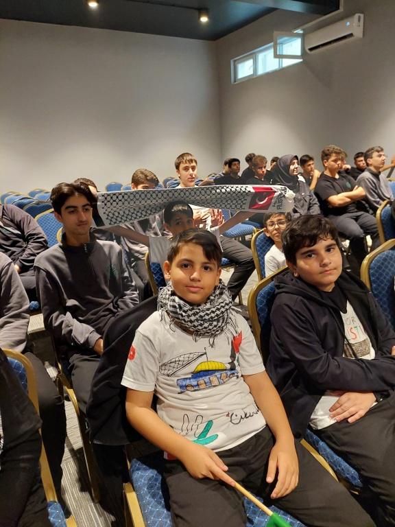 Öğrencilerin çizdiği resimler sergilenirken, kısa film gösterimleriyle Gazze'de yaşanan dram öğrencilere anlatıldı.